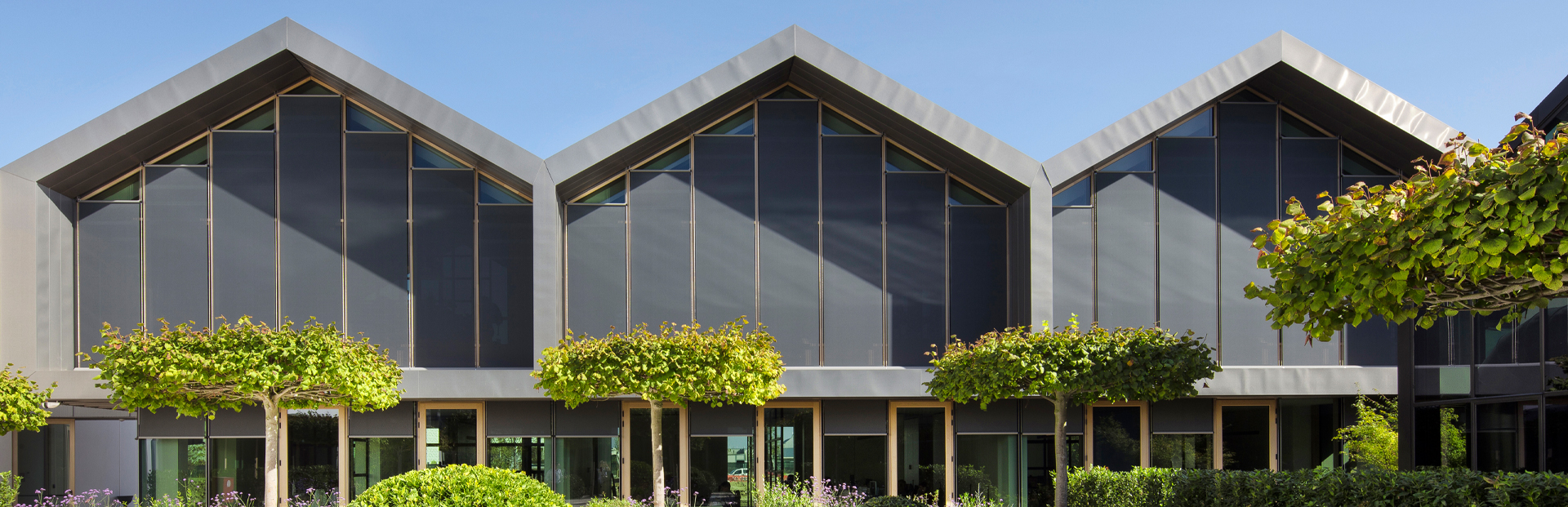 All roller systems are automated thanks to a special control unit that manages the opening and closing of the screens. Like an orchestra conductor, it is the sun that initiates the systems’ silent up or down movement. The Davines village is conceived and designed to minimise the use of artificial lighting. Thanks to the properties of the shading Vuscreen Messina fabric, Code 31808 in the Anthracite colour, the interior spaces are characterised by excellent thermal and visual comfort combined with natural and welcoming lighting.