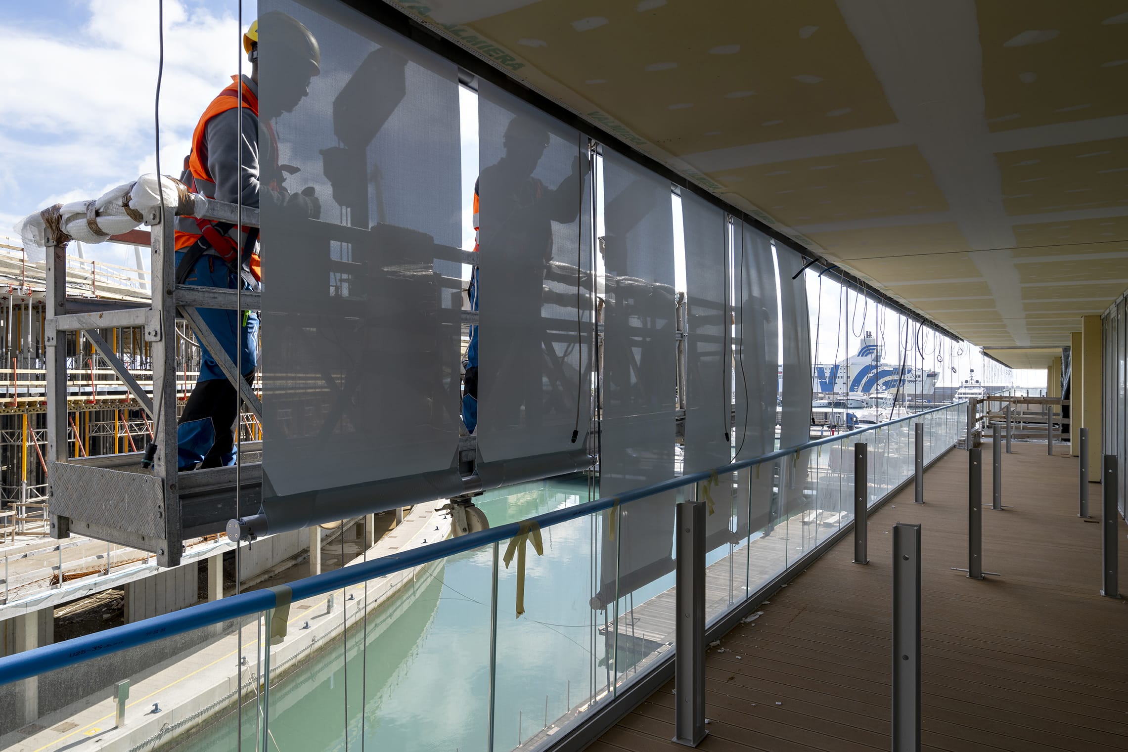 Installation was also a crucial aspect of Resstende’s intervention. Along with the architectural and functional beauty of the Resstende solar screens, their impeccable installation highlights the company’s commitment to enhancing the aesthetic and functional value of the Levante Waterfront, making the project not only a technical success but also an added value for the city.